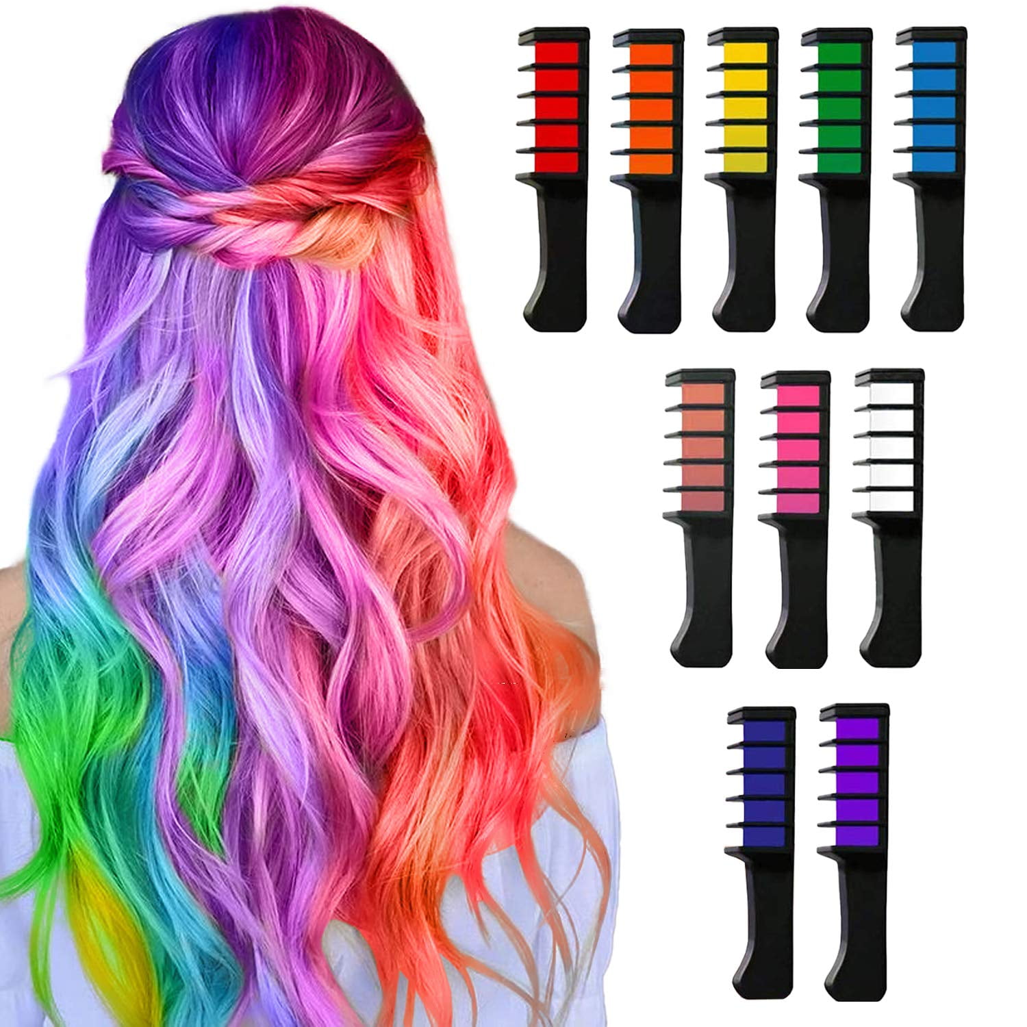 Hair Chalk For Girls Kids Temporary Bright Hair Color Hair Chalk Comb Washable Non Toxic Hair Dye Halloween Christmas Birthday Parties Girls Gift For 1 2 3 4 5 6 7 8 9 10 Year Old Girl 10 Colors Walmart Com